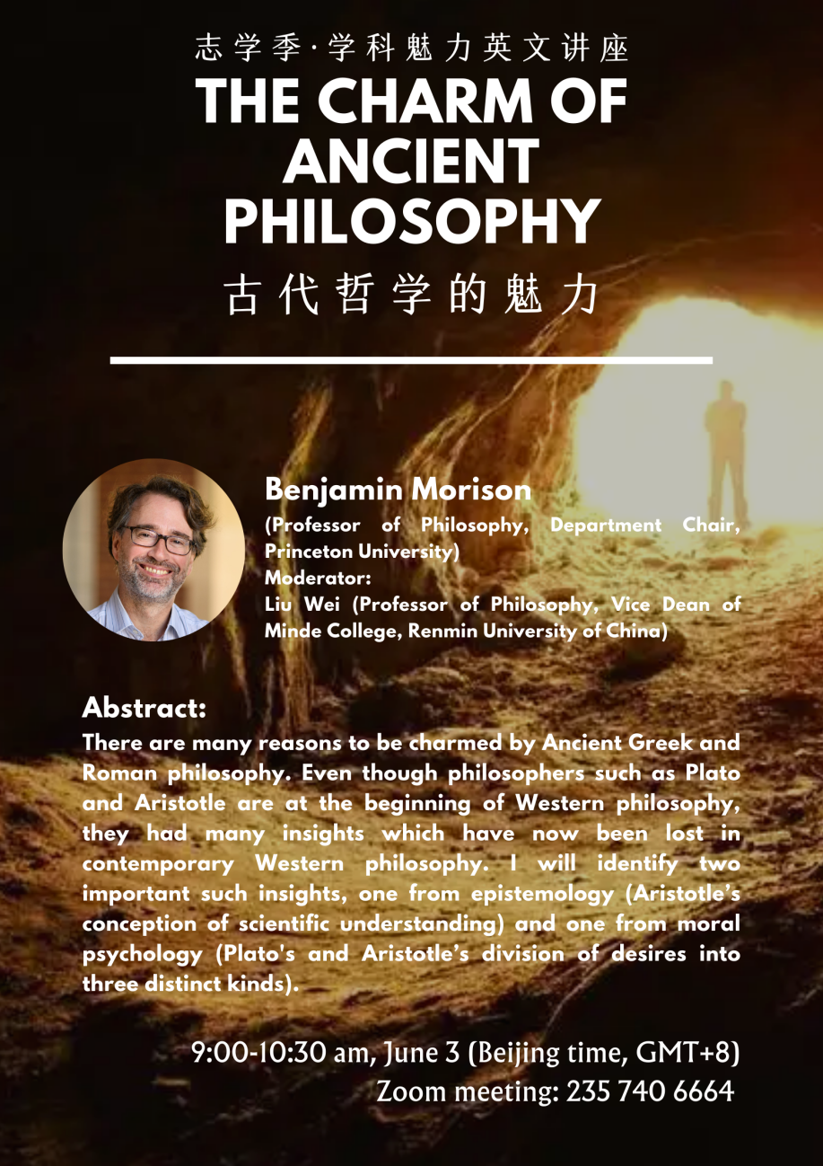 本次讲座,普林斯顿大学哲学系主任、古代哲学专家本杰明·莫里森教授将介绍他走进古代哲学的旅程,并用具体的例子展示古代哲学的独特魅力!