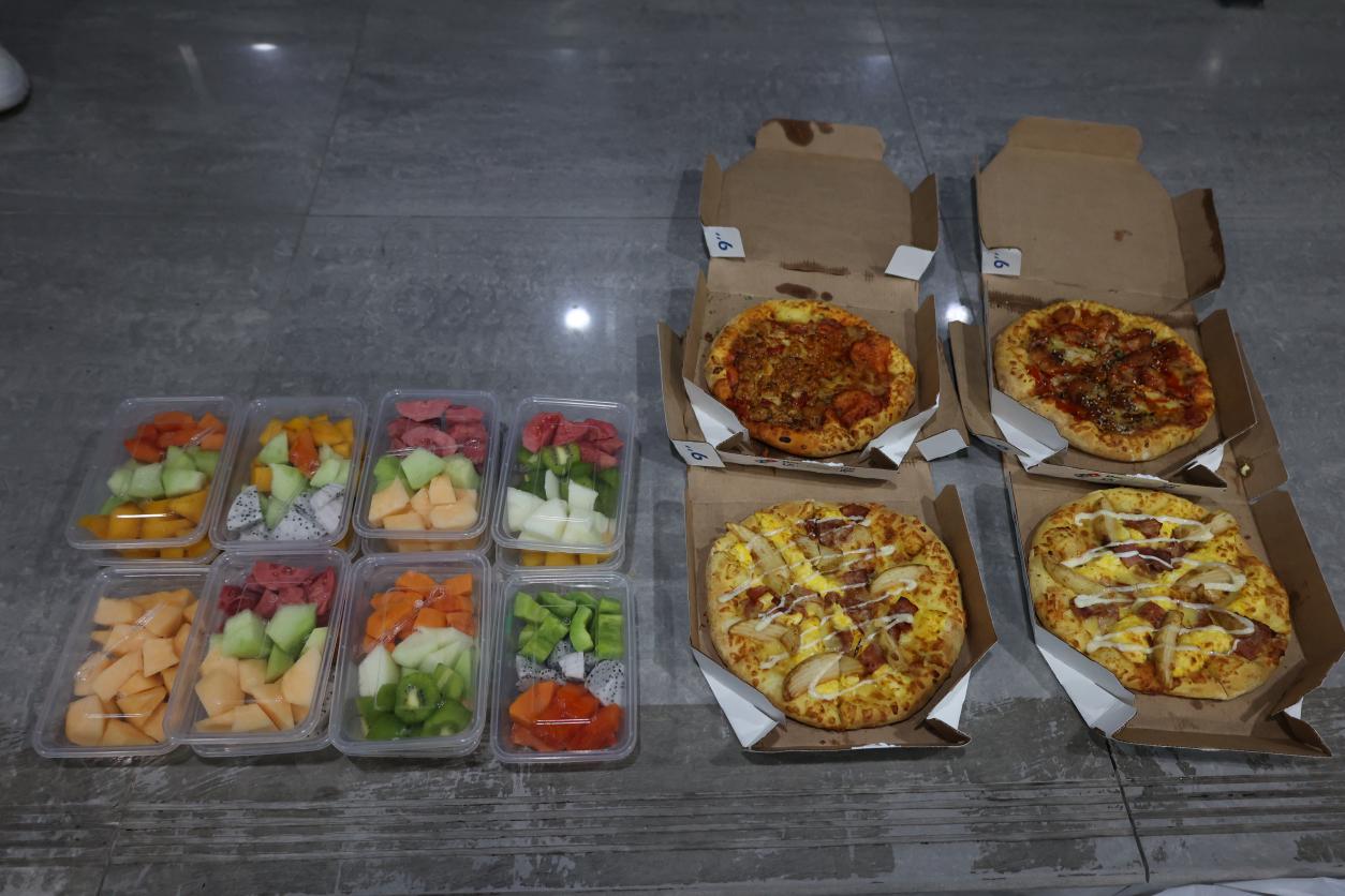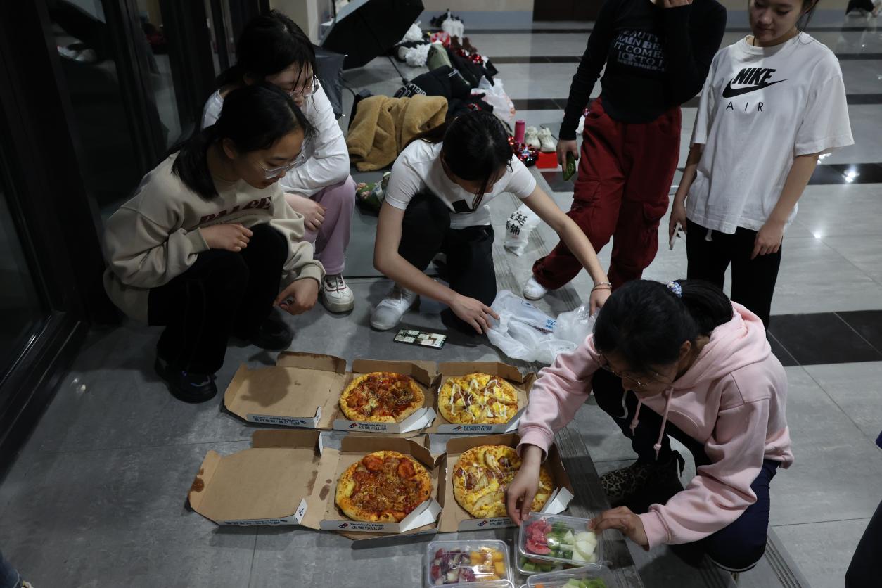 当晚,书院工作团队与学发联办公室同学一起带来了水果和披萨,希望大家能够在训练间隙补充能量,并加紧投入到最后阶段的冲刺之中,带着最自信的精神面貌登上明德堂。