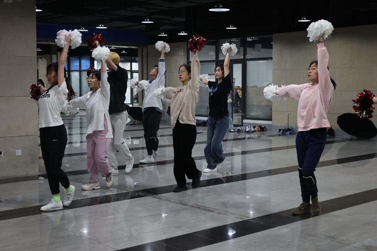 简单热身后,同学们在教练的指导下温习动作,并向书院老师们展示了多月的训练成果。一次次的走位和发力中无不凝结着刻苦练习的汗水,从托举配合到层次动作,大家默契满满、信心十足。