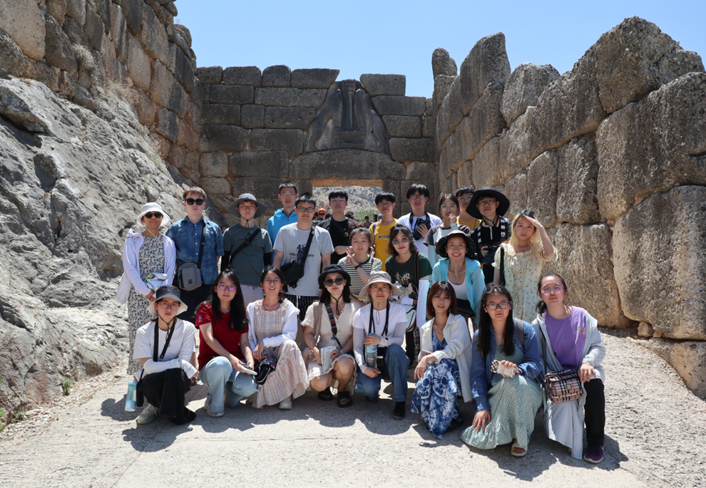 随后,研学团离开雅典,前往迈锡尼遗址,参观了久负盛名的狮子门、王室墓葬坑、王宫遗址、阿特柔斯的宝库等区域,将沿途所见与在荷马史诗和希腊悲剧中读到的内容相结合,让同学们对迈锡尼文明有了更深入、更生动的体会。