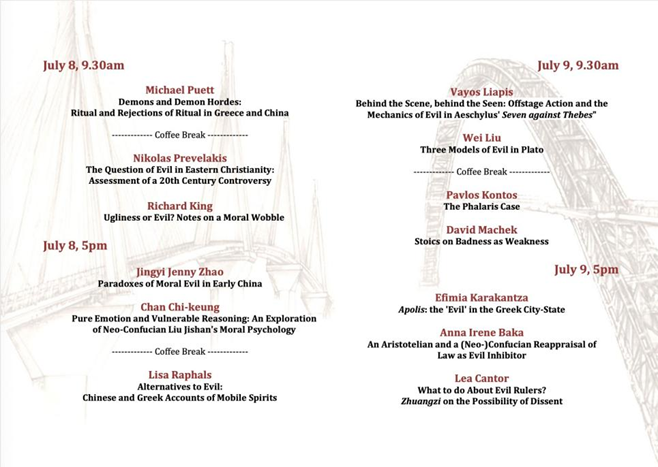 7月8日-9日,研学团在“中西文明互鉴中心”的合作院校帕特拉斯大学参与了“中国与希腊思想中恶的模式”的国际会议。会议由帕特拉斯大学哲学系,哈佛大学希腊研究中心和中希文明互鉴中心共同主办。