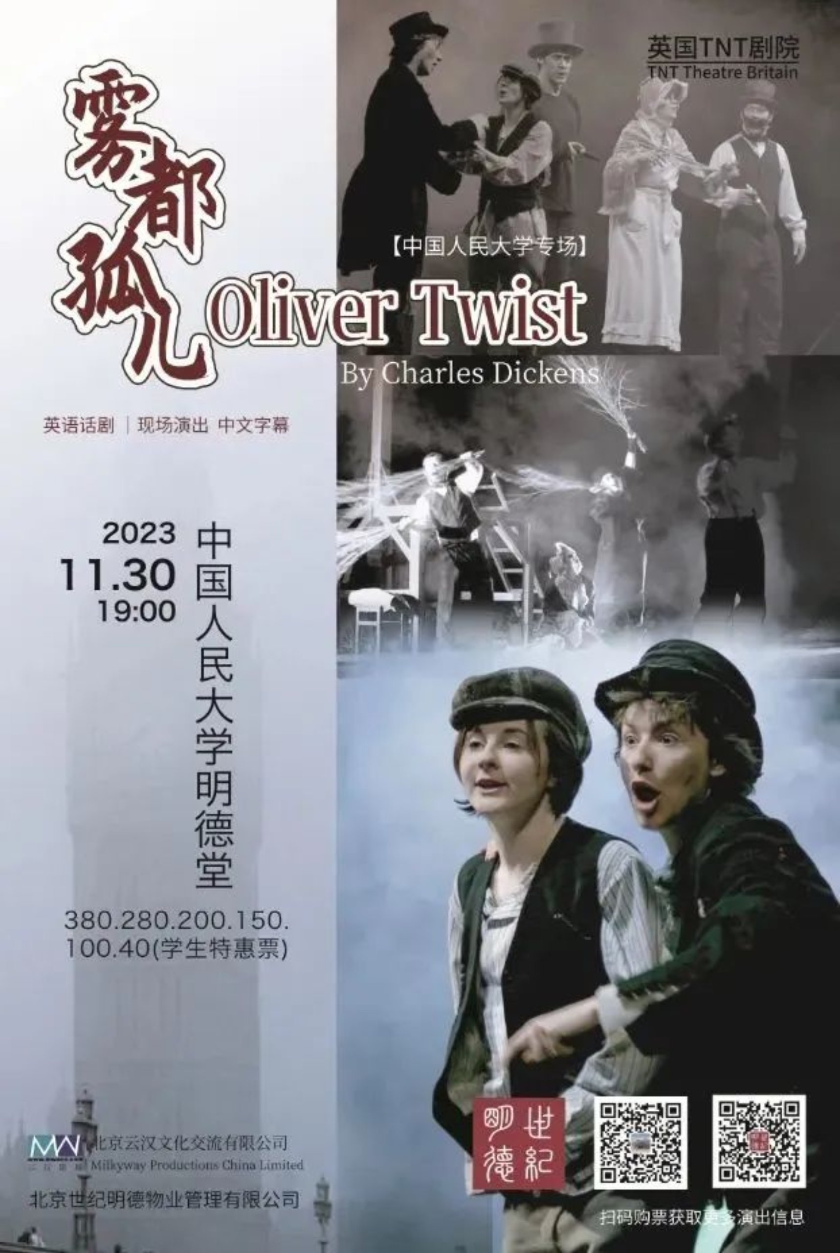 根据狄更斯原著改编,英国TNT剧院经典剧目《雾都孤儿》Oliver Twist英文原版话剧,现场演出,中文字幕。11月30日,明德堂不见不散!