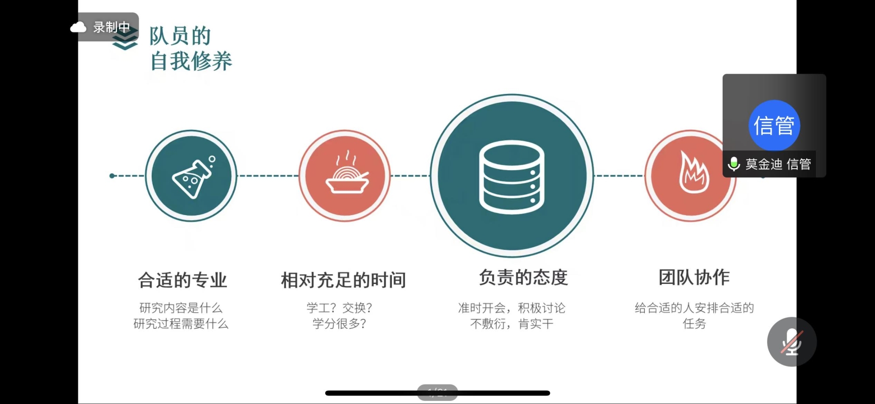 国家级、市级及校级立项团队成员韦骅津、麻家恺、叶凯鹏、莫金迪和宋若银同学相继分享项目开展经验,并从队伍创建、实地调研技巧、文献整理方法、调研报告撰写等方面为预参与大创项目的同学们提供宝贵建议。