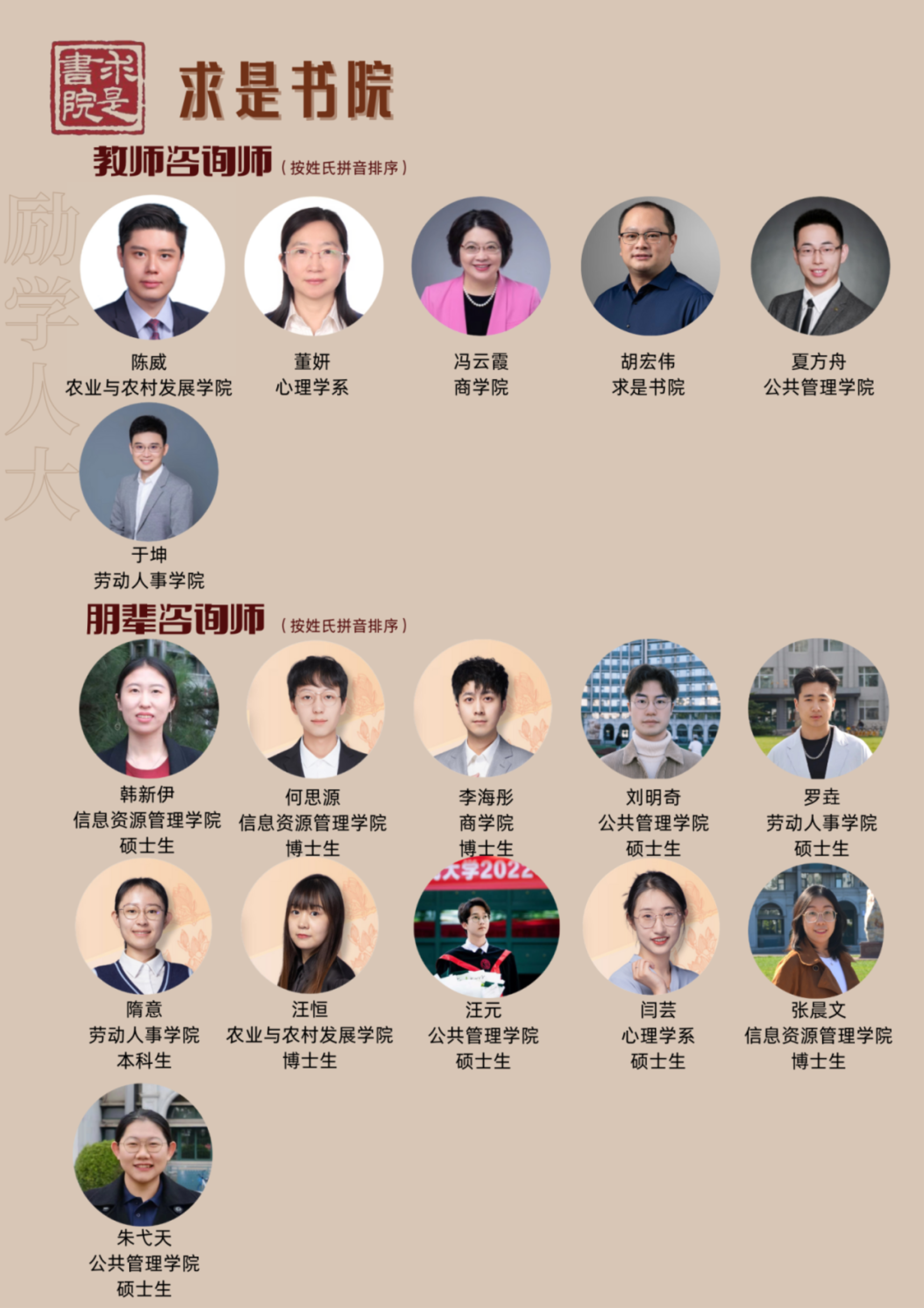 以上为本学期第一批咨询师团队,欢迎更多老师同学继续加入。