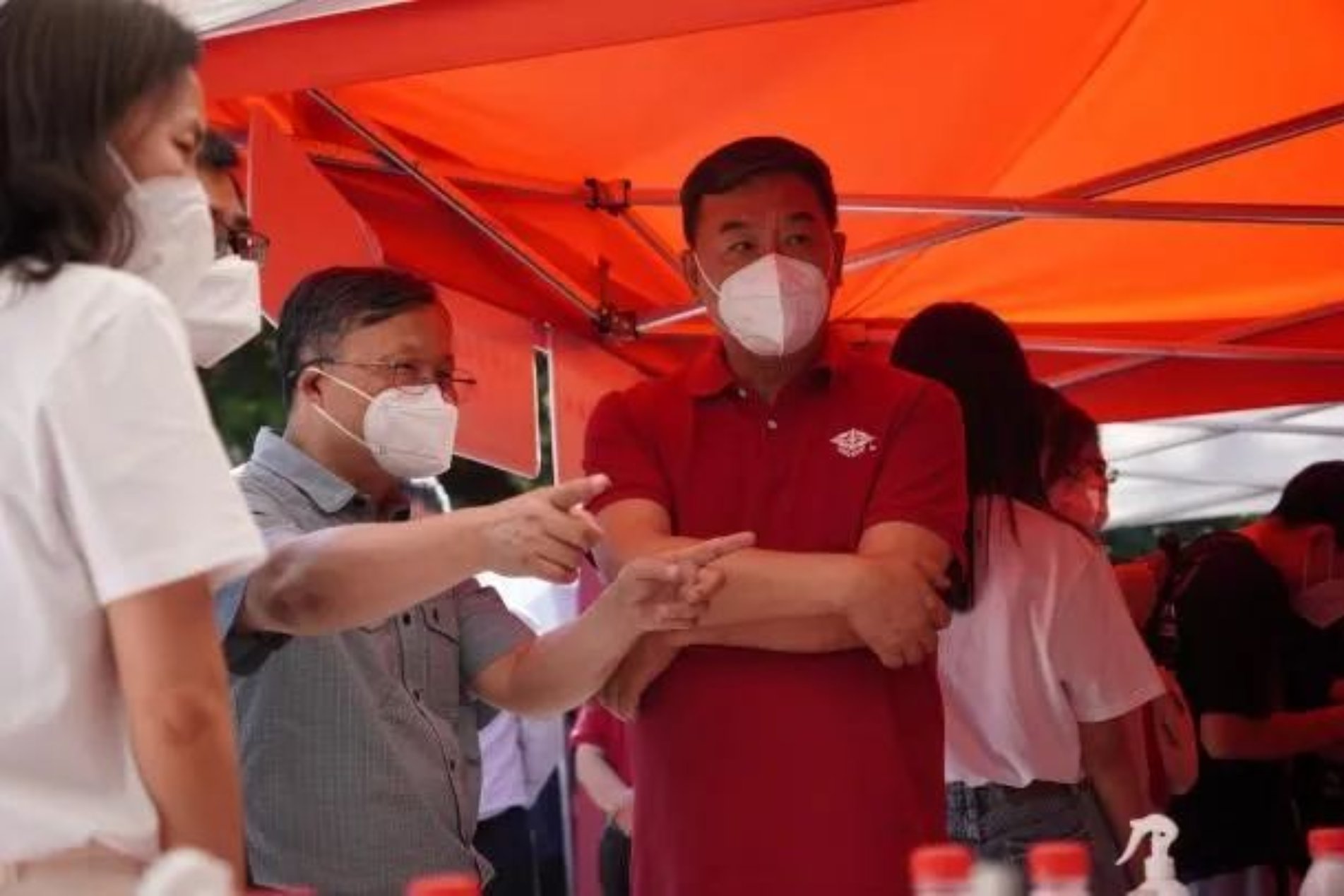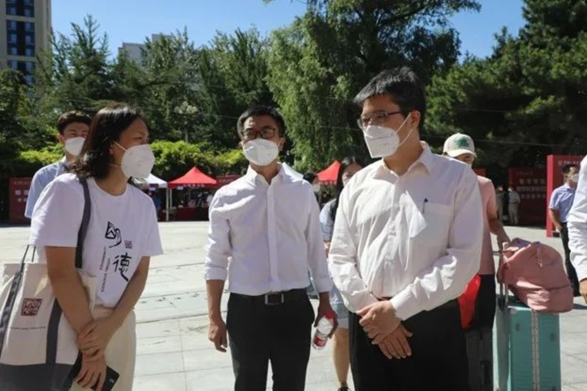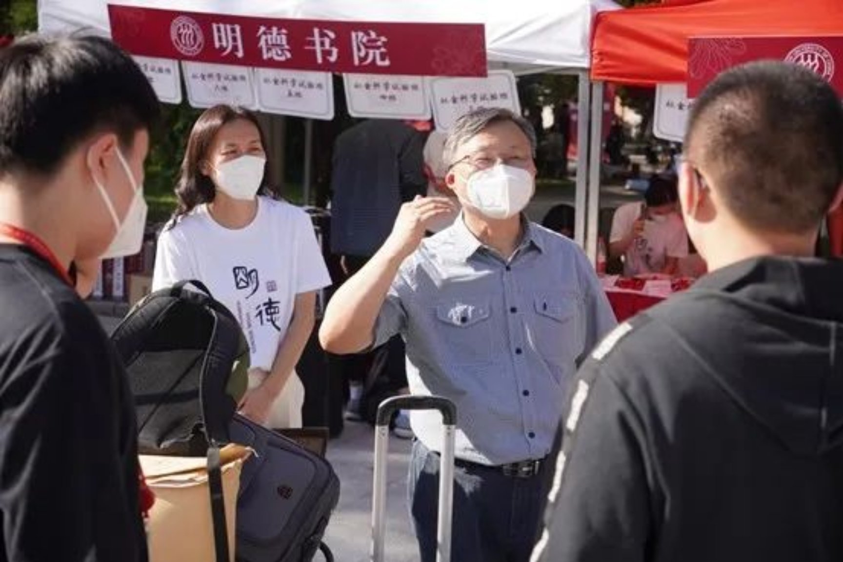 书院院长郝立新、直属党支部书记蒙彬、副院长刘玮来到迎新点亲切慰问志愿者、迎接新生。