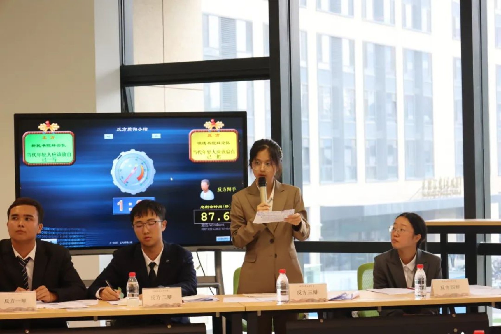 ( 水静静在“书院杯”新生辩论赛小组赛上)