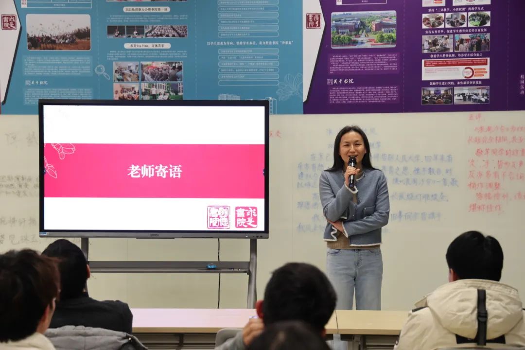 蒙彬老师为大家寄语加油鼓劲。她表示,从“一二·九”合唱到“人大组歌”展演,是大学文化传承的重要形式。希望同学们以此凝聚大学生活的共同记忆,共同创造出《陕北公学》《吴玉章》《“先锋·人大组歌”音乐舞蹈史诗》等一系列优秀的校园艺术作品,形成一代又一代人大人的精神底色和文化符号,并预祝同学们演出成功,共同闪耀明德堂。