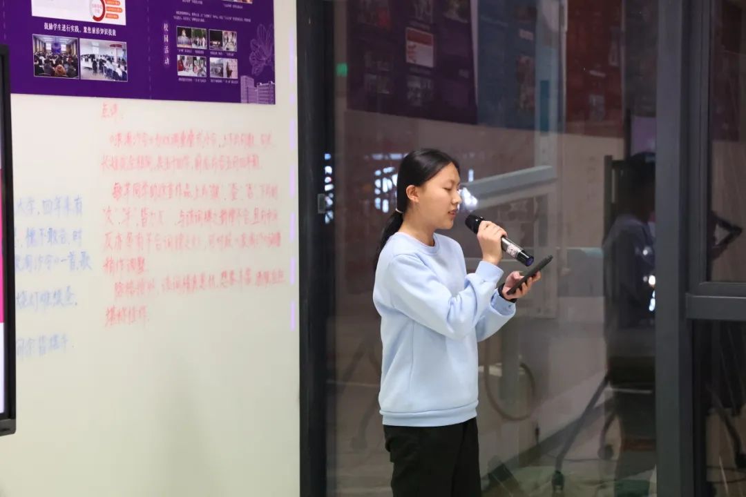在共同期待的才艺展示环节,童谣同学带来了歌曲《love story》,刘航希同学带来歌曲《雾之恋》。同学们一边吃着果切,一边欣赏两位同学动听的歌声。