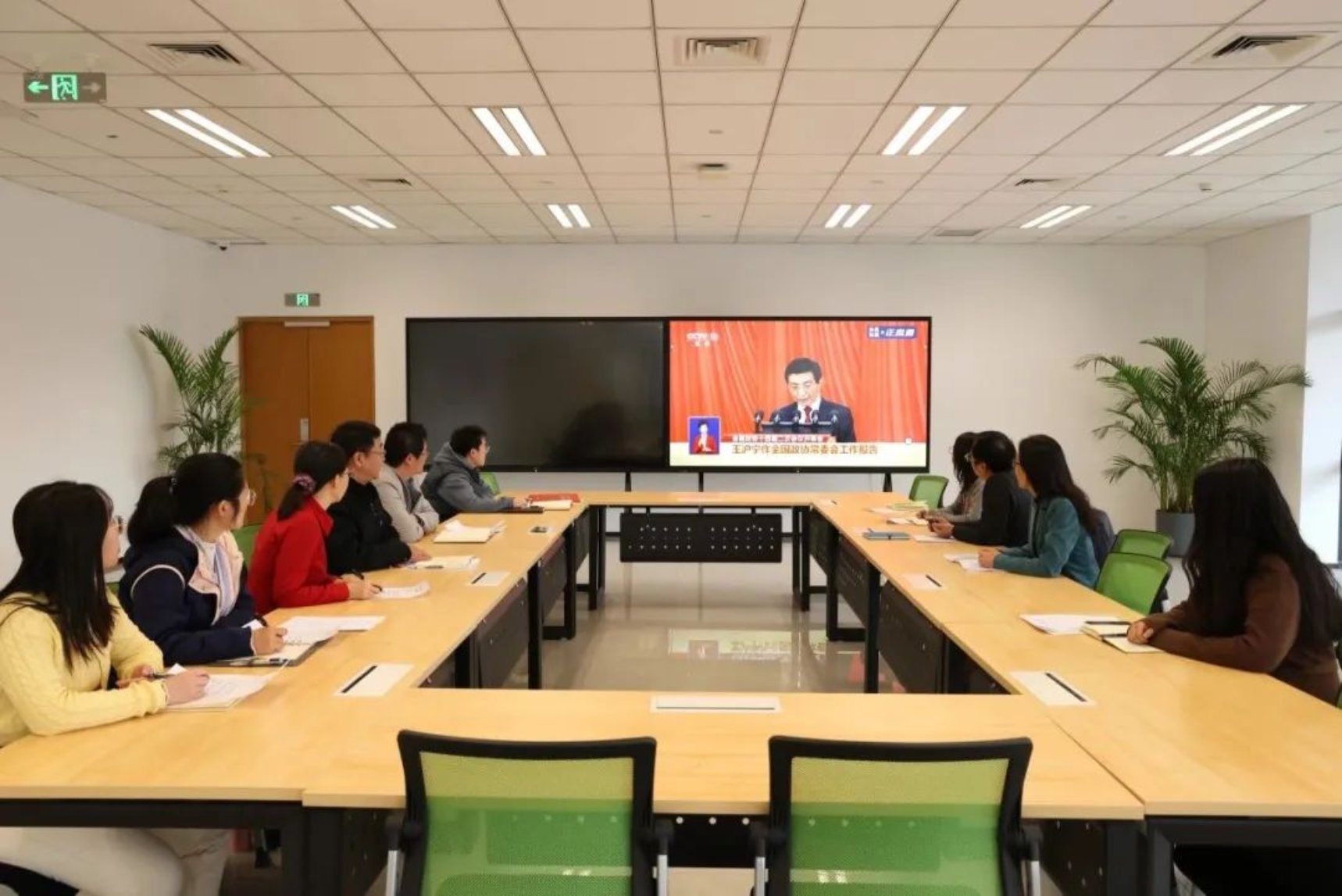 3月4日下午,书院建设与管理中心教职工在书院第六空间收看全国政协十四届二次会议开幕,学习政协常委会工作报告。