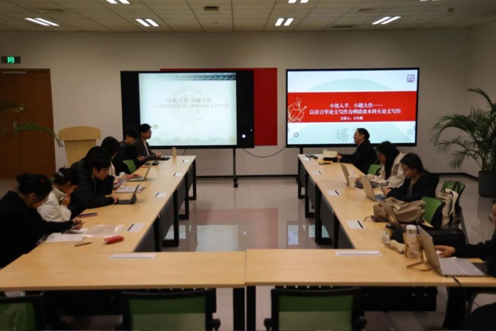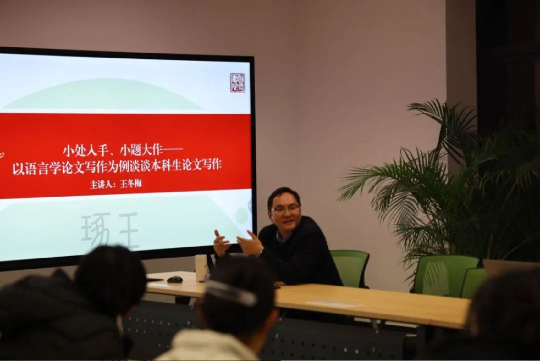 10月29日晚,明德琢玉论坛“写作指导与经验分享”系列活动第六期“小处入手、小题大作——以语言学论文写作为例谈谈本科生论文写作”在立德楼二层书院第六空间举办。本次活动由《中国语文》学术编辑王冬梅老师主讲,性爱视频 副院长华建光老师主持。