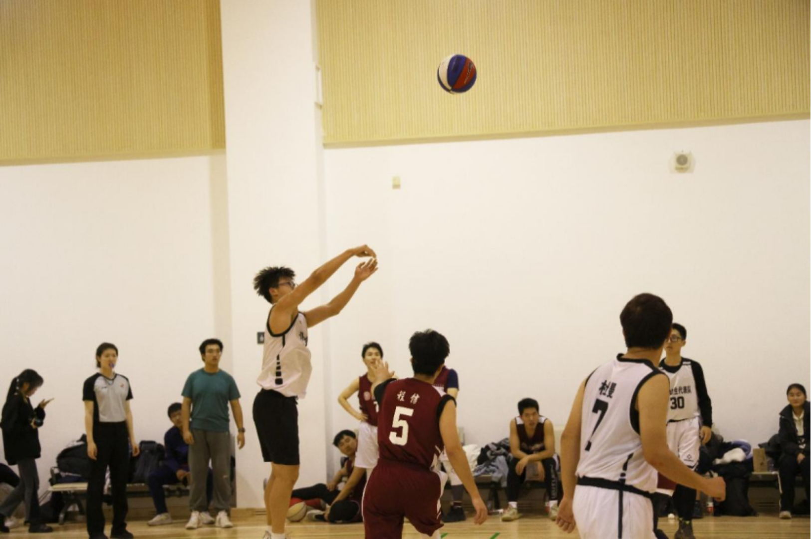 11月7日,书院新生代表队的最后一场比赛在裁判的鸣哨中拉开序幕,对手为高瓴人工智能学院。比赛开始对方先发制人拿下首分,而我们也毫不示弱,利用个人能力与传球配合投篮命中,随后对方依靠身体优势强打我方内线造成犯规,在首节将分差拉大。第二节比赛上来后,书院队员并没有放弃,在改变战术后由陈云山吸引防守,侯莫远中投成功打进,同时王江山也多次内线强起,屡屡得分。而无奈当天比赛只有五人轮换,并无替补,随着比赛进程深入,对方轮转深度的优势体现出来,多次内线打进,而我方则在追分无望的情况下尝试新的战术,由其他控卫控球,为陈云山制造空位三分机会,并在第四节成功打进。最终全场比赛结束,比分定格在19:51,书院新生代表队遗憾输掉比赛。