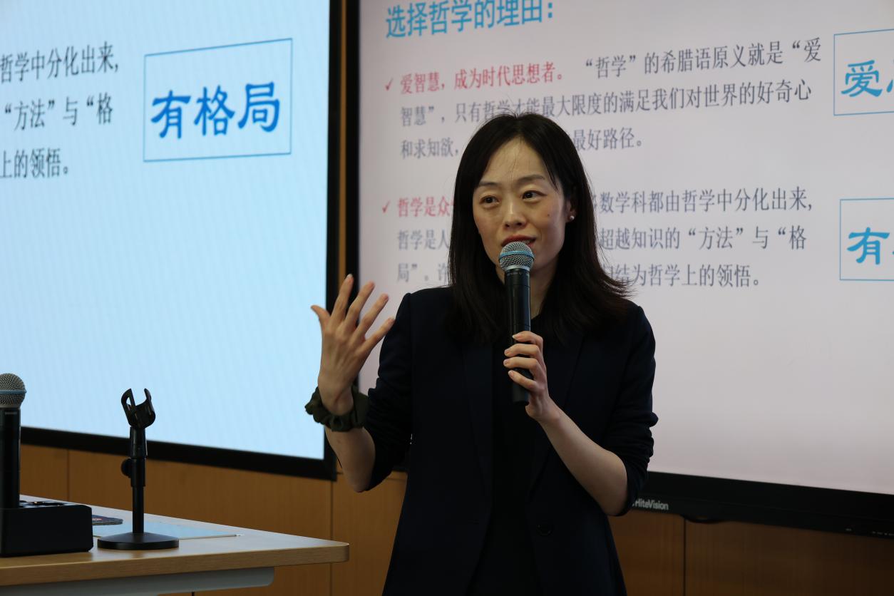 田洁老师主张“人不哲学枉少年”,哲学将从生活方式、能力养成等角度带给同学们美好的体验。生活方式不仅仅强调学习生活,而是引导我们去观察、思考,哲学是一门从思想层面指导人们生活的艺术;能力养成也不只是信息知识的获取和堆砌,而是要求同学们明辨是非,通过缜密的逻辑分析,培养起解读文本、有效沟通、理解多元和差异等能力,哲学将带领同学们去到更远的地方。