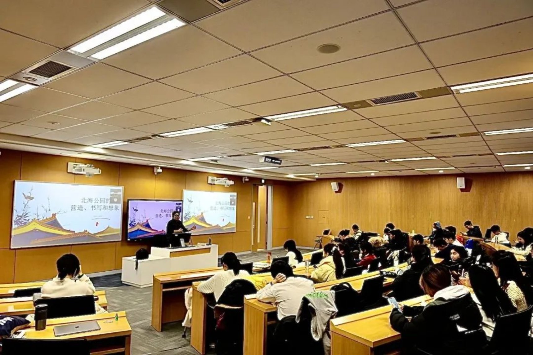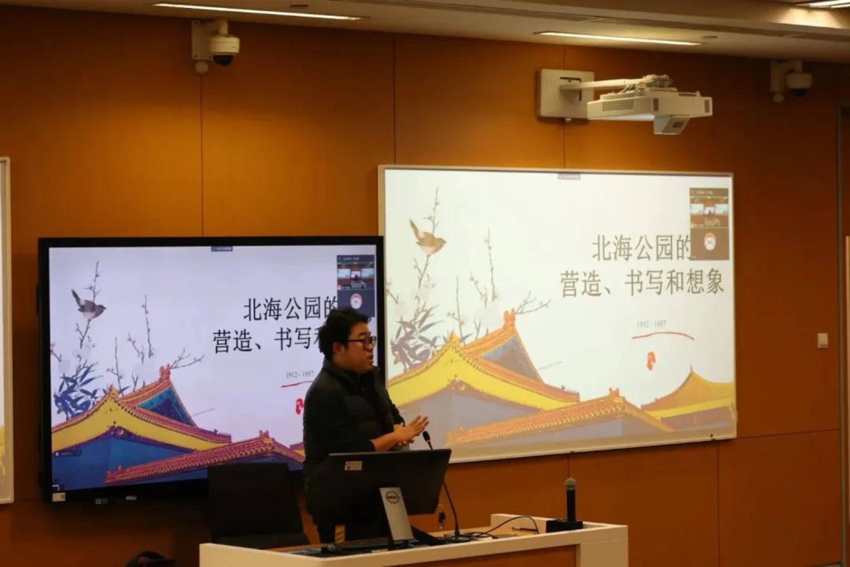 班级辅导员刘洪昌以“北海公园的营造、书写和想象”为主题进行专题分享,带领同学们了解了行前的必备知识,为本次活动进行预热。分享围绕20世纪初期北海公园的实物空间与文化空间生成和塑造的过程,探究这一地理区域如何成为今日之“北海”。刘洪昌首先通过奏折等档案材料以及报纸关于京师公园的报导和评论,考察了清末新政时期官方与社会群体对于公园这种新型公共装置的认识与态度;通过对京都市政工所《市政公报》文本的解读,以及对不同时期北京市地图的对比,他带领同学们一起探析了北洋政府初期对北京公园建设的定位与总体规划;通过对北海开放前夕袁世凯政府以及梁启超、蔡元培等为代表的教育家和社会活动家围绕北海进行的一系列活动的梳理,展示了不同政治力量对北海公园文化形象与景观设置的塑造过程。随后他从清代乾隆《御制雪中坐冰床即景图卷》入手,带领同学们探究20世纪20年代开放后的北海公园的景观营造与娱乐活动设置展现出的传统的断裂与延续。同时,他还以五四新文化运动时期的新文学作家和青年学生在北海地区的活动与文学写作为线索,展现了“北海”这一城市空间在新文化运动时期被赋予的全新的文化含义。而在1928年首都南迁以后,随着北京(北平)城市功能定位的变化,北海公园的文化内涵与游览群体也在悄然发生改变。他的分享为同学们详细地展示了北海公园的发展历史,也为观察城市文化的形成与演变提供了新的视角。