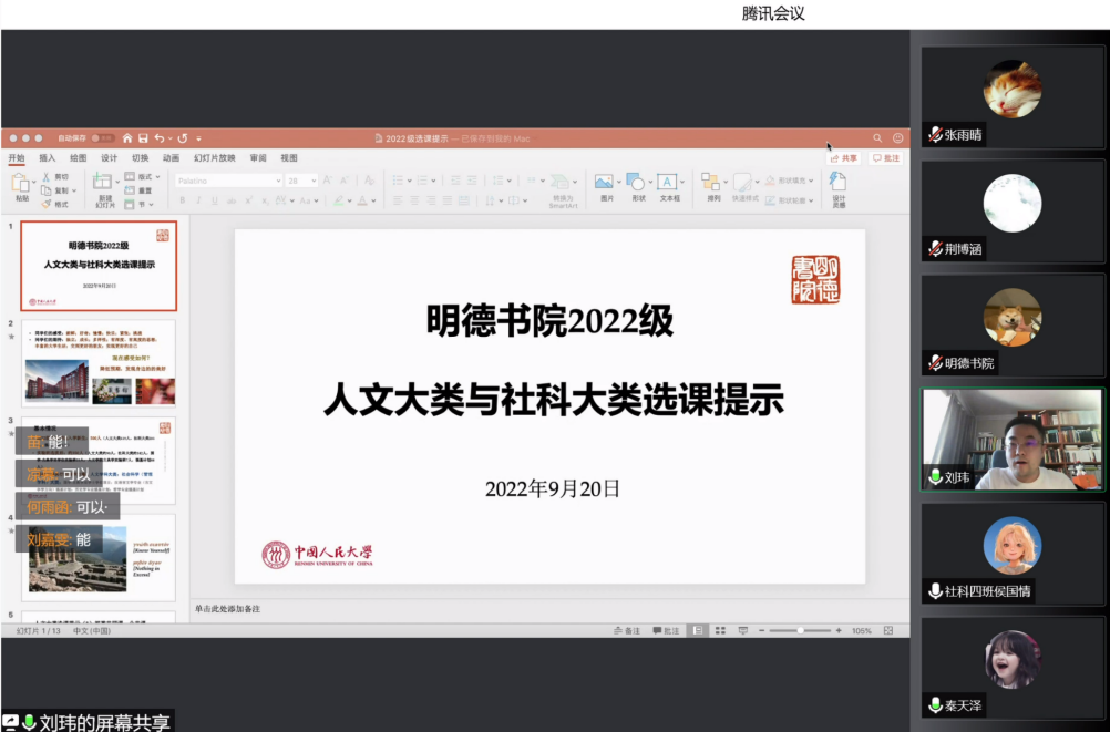 2022年9月20日,性爱视频 组织了2022级人文大类与社科大类培养方案的解读会,性爱视频 副院长刘玮老师、性爱视频 教务处秘书施小斌老师为新生解读了两份培养方案的结构和内容,提示同学们选课的注意事项,帮助同学们熟悉选课平台,总览书院学业活动,并为即将进行的新生选课做准备。