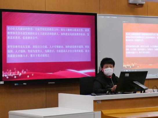 许艳艳和王朝分别围绕“青年”和“科教兴国”展开延伸性解读。许艳艳从青年工作的必要性和必然性出发,分析了青年和时代的关系,青年工作在党和国家事业发展中的战略地位、主要任务、方式方法,鼓励团员学生听党话、跟党走,认真学习领会二十大精神,争做可为青年。王朝带领支部团员解读了二十大报告中关于“科教兴国战略”的重要内容,着重分析了“科技是第一生产力、人才是第一资源、创新是第一动力”的重大意义,鼓励团员学生钻研科学知识、锻炼专业本领、培养创新意识,争做“复兴栋梁,强国先锋”。