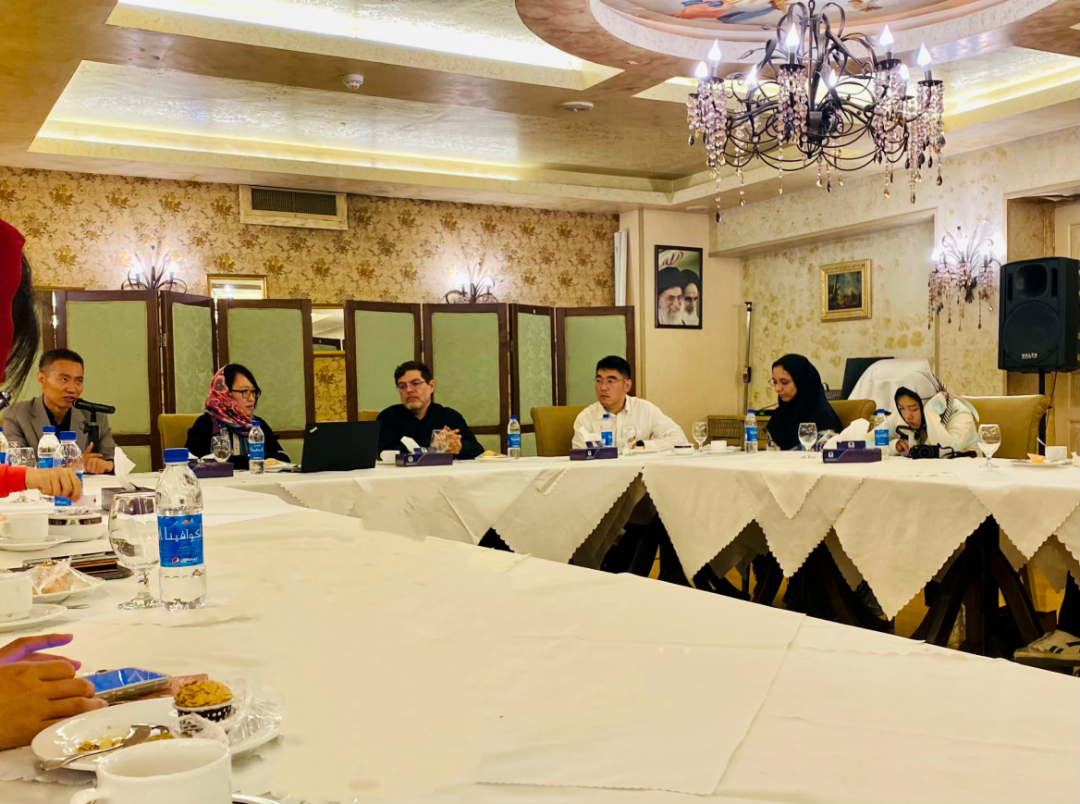 7月30日上午,研学团与伊朗玻璃器博物馆馆长Navid Salehvand博士座谈。Salehvand馆长做了题为《伊朗玻璃生产调查:从起源到萨珊时期》的报告,从玻璃器的材质、制作工艺、用途、贸易路线等方面进行了内容丰富翔实的分享。他介绍,玻璃器是伊朗视若珍宝的历史载体,对于了解伊朗历史和王朝更替兴衰具有重要价值,希望研学团在参观中可以亲身感受玻璃器的魅力。