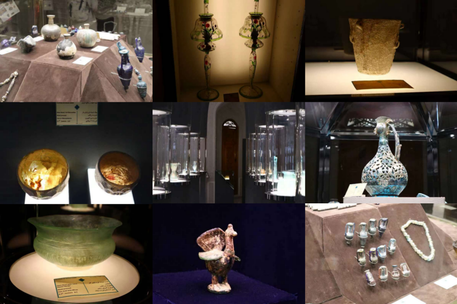 7月30日下午,研学团前往伊朗玻璃器博物馆参观。玻璃器博物馆建筑是一座结合传统波斯建筑与19世纪欧洲建筑风格的古宅,1998年被列为伊朗国家文化遗产。馆内分为8个展区,研学团观看了种类繁多的展品,其中以伊朗境内罕见的玻璃和瓷器工艺品为主,时间维度上包含近至19世纪,远至公元前1世纪的欧洲玻璃制品,丰富的工艺品充分展现了波斯人的艺术智慧与厚重历史。