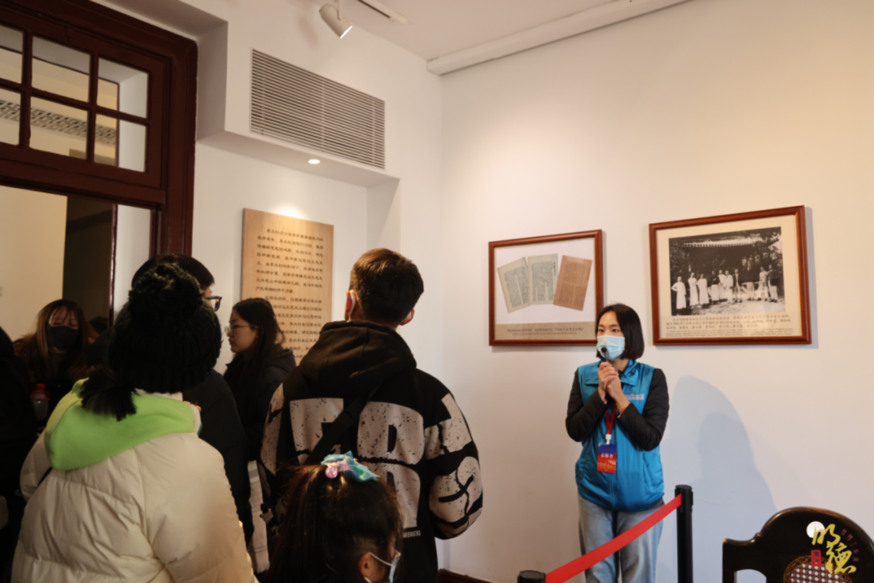 跟随讲解人员的脚步,同学们进入了北大红楼一楼,开始了这场穿越时空的对话。在图书馆主任室,李大钊先生提笔写下了对联:“铁肩担道义,妙手著文章”;在五四游行筹备室,百年前爱国青年在床单上写下了“外争主权,内除国贼”的铿锵誓言;在《新青年》杂志展厅,同学们深入学习了这本为无数进步青年指明方向的书刊的办刊历史……