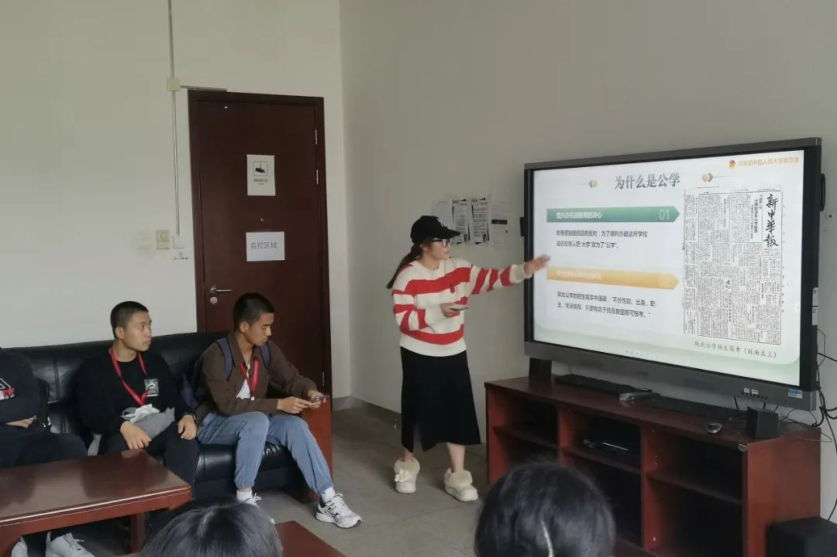 书院各团支部坚持理论学习与实践运用紧密结合,由团支部书记带领团员们集体阅读《陕北公学》《陕公生活》等校史书籍,并积极开展读书交流分享会,从对陕公革命前辈历史故事的探知中,夯实理论之基;走进校史馆接受校史党史教育,倾听讲解员对人大创业史、成长史的细致解说,深入了解中国人民大学的发展历程与优良传统,把握实践之要。