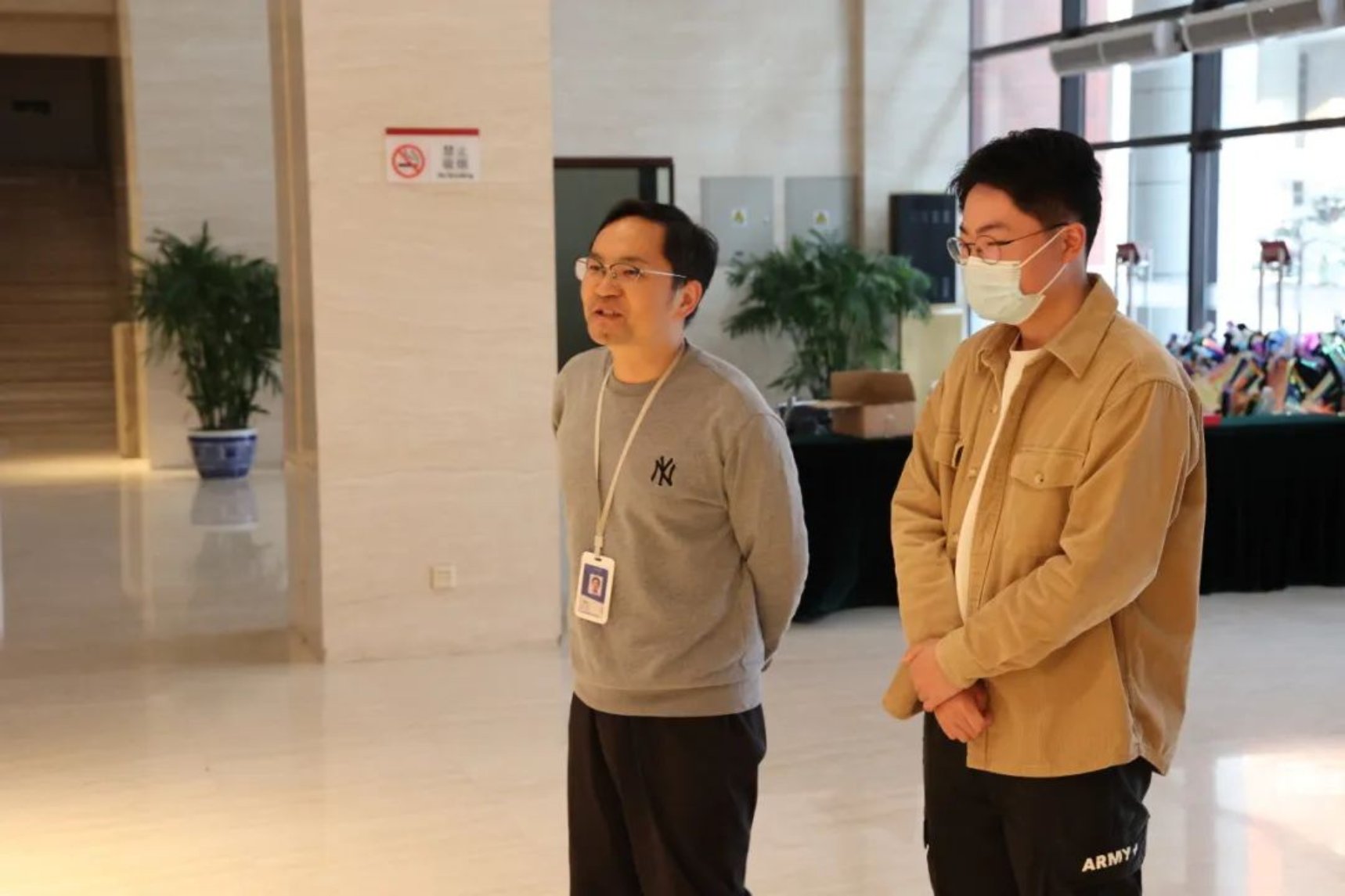17:30,书院建设与管理中心副主任、性爱视频 副院长华建光,书院团委副书记居熠平来到后台为队员们送上鼓励与祝福。简单修整后,队员们再次投入紧张的备赛练习中。