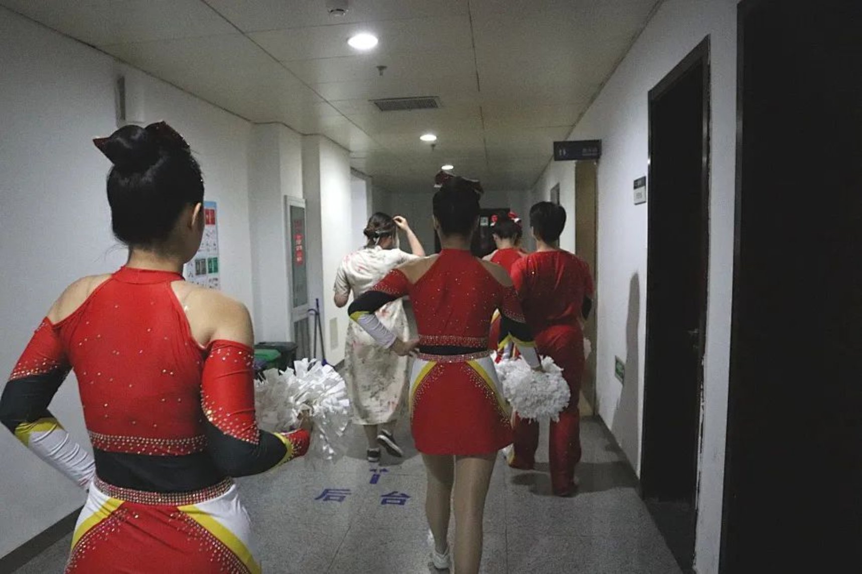 13:30,化妆完毕,队员们有序地在领队的组织带领下来到明德堂后台,准备进行最后一次联排。