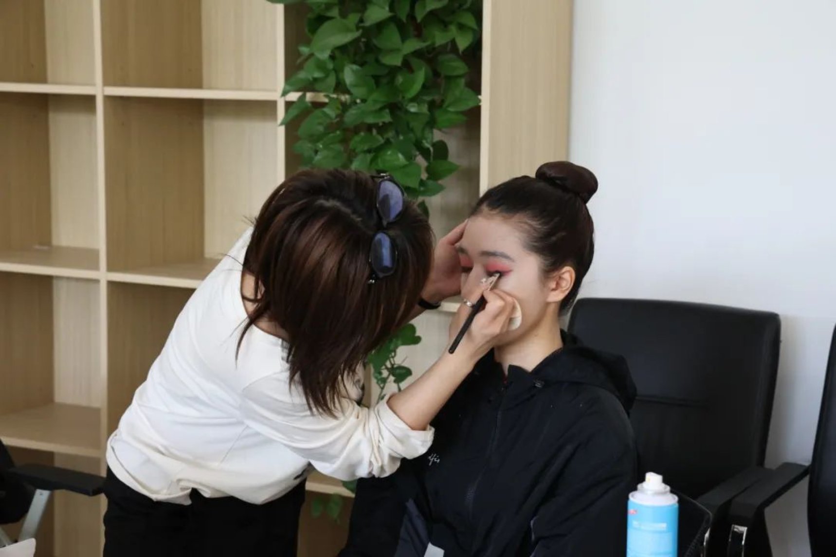 7:30,书院健美操队的队员们陆续到达立德楼一层空间开始化妆。