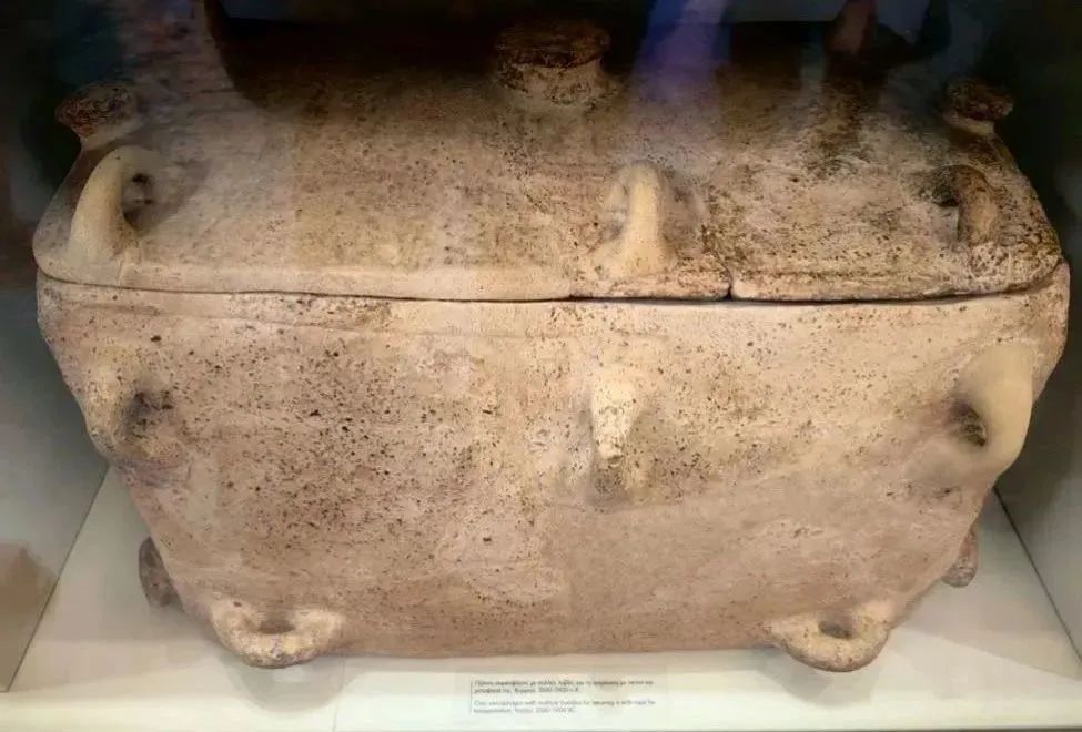 研学团师生都被形状类似子宫的瓮缸棺椁吸引,这件文物昭示了克里特人的生死观念,生由母亲子宫而来,死亦从此而去,并且要回归出生之前的身体姿态。为了使死者在地下安心,在他们棺中放有食物、盥洗用具以及泥做的妇人小像,让她能永远照顾和安慰死者。地位较尊贵的死者生前拥有的部分金银珠宝会被用来陪葬,善弈棋的人陪葬的便是一副泥棋,音乐家便会得到泥制乐器,喜爱航海的人则会获得一条小泥船。