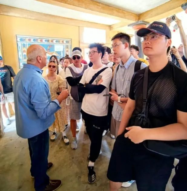 (当地导游为研学团同学介绍克诺索斯王宫的建筑特点)