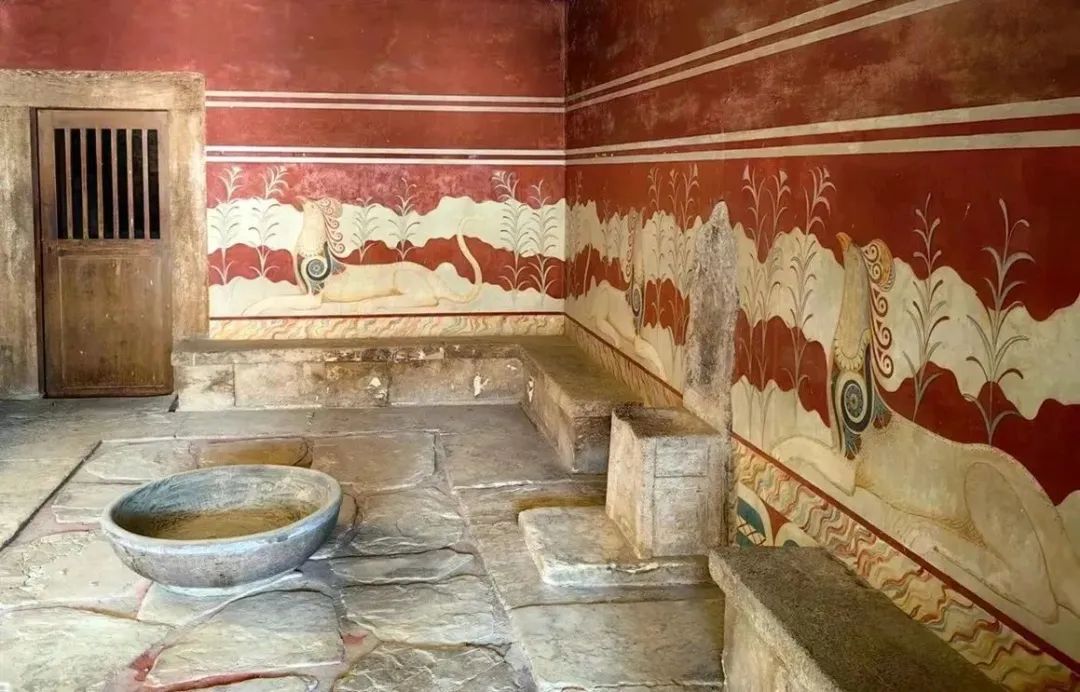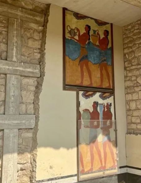 在宫殿的不少房间里,都有着非常精美的壁画,比如著名的“百合花王子”“三女子”“跃牛图”“汲水者”“狮鹫图”“海豚图”等等。这些壁画造型生动,展示了米诺斯文明极高的艺术水准。