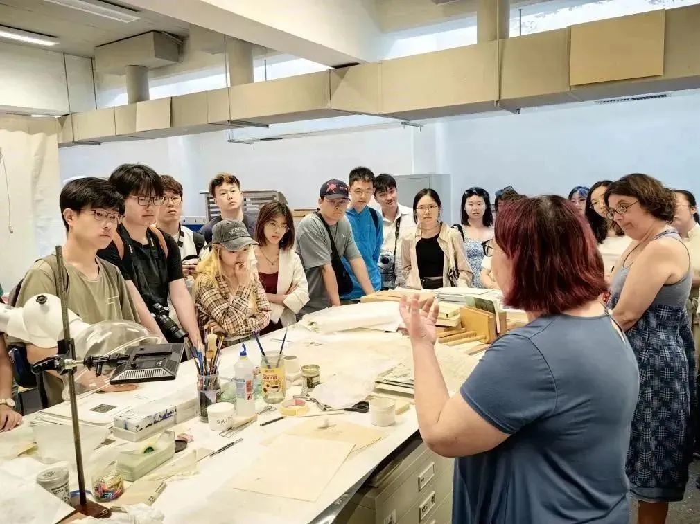 (图书馆员为研学团介绍书籍修复的知识)