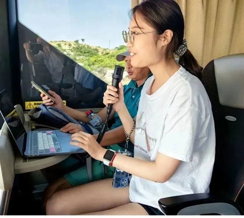 7月12日下午,研学团前往埃勒夫瑟纳考古博物馆(Eleutherna Archaeological Museum)参观。在路上谭露璐同学和大家分享了自己对爱琴文明的希腊传统是否保存延续的理解。她从“如何理解黑暗时代”和“古风时代城邦文明兴起与爱琴文明、黑暗时代的关系”这两个层面给大家进行了解读。从精英阶层与社会结构、平民生产方式与经济结构、宗教艺术表现形式和八世纪革命等方面介绍了考察黑暗时代和古风时代的方式,并将自爱琴文明衰落以来希腊城邦文明兴起的历史图景展示在同学们面前,帮大家分析了“城邦的出现更多的是希腊社会自迈锡尼文明解体之后渐次发展的结果”这一观点,纠正了一些关于“黑暗时代”的错误理解,促进了同学们对城邦文明发展历程的了解。