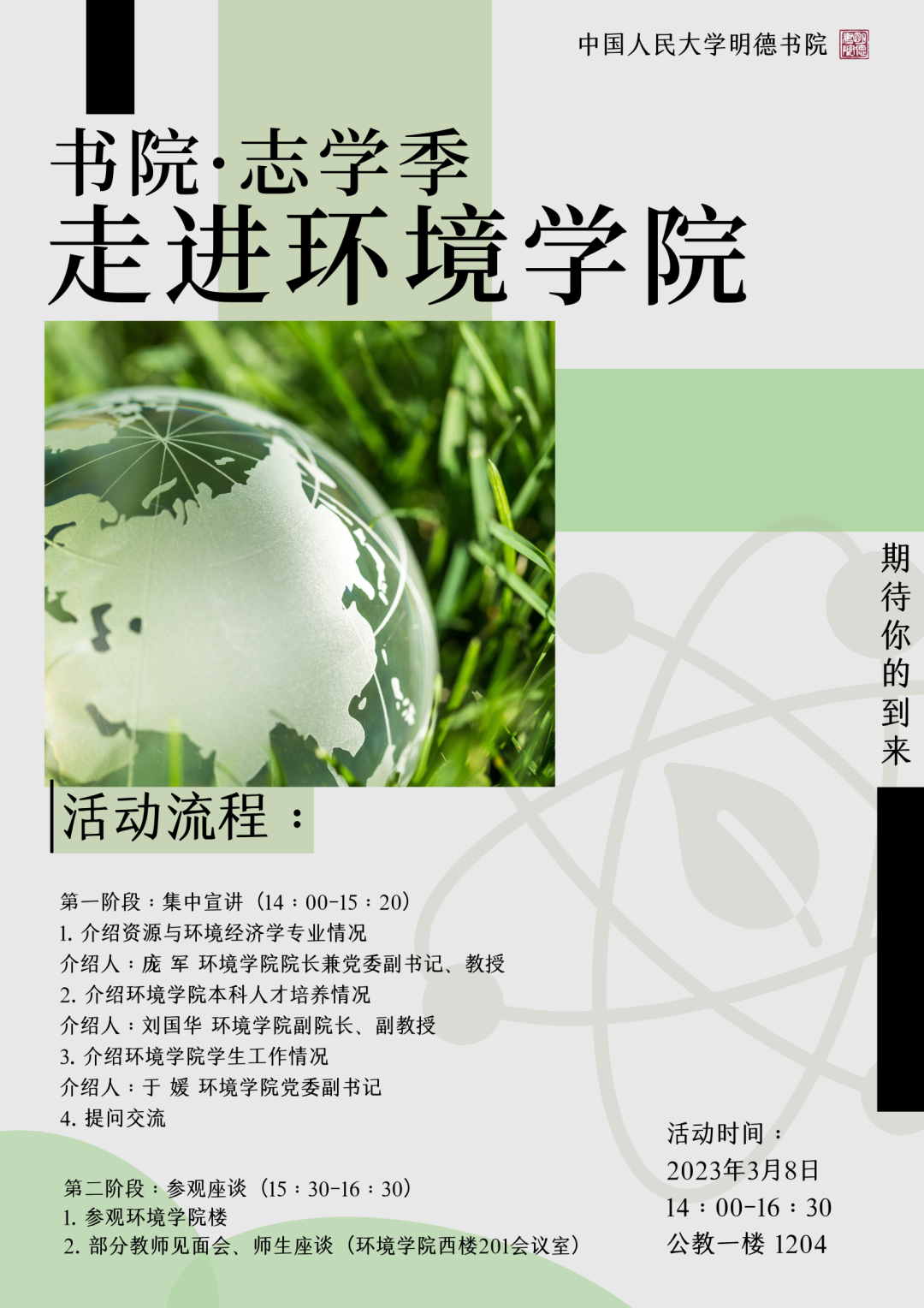 3月8日下午第一期走进学院系列活动举行,一窥资源与环境经济学的无限魅力。当日具体活动安排如下: