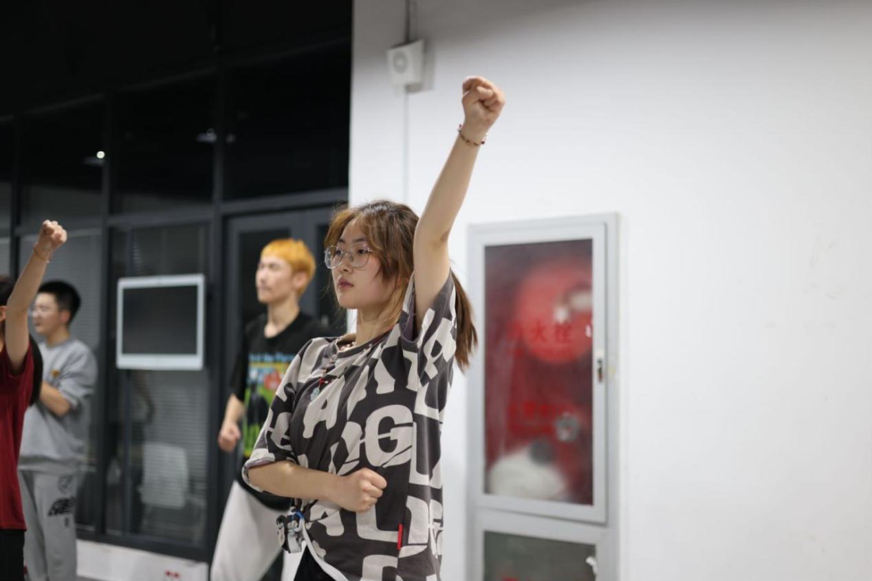 在上个学期,明德健美操队经过教练线上技术指导、领队亲自纠正动作、优秀队员展示所学动作、自觉进行体能训练等备赛环节,在每周训练日的晚上用行动践行、用拼搏证明。每一张训练结束后领队拍下的动作照片都成为队员们的珍贵收藏,在下次训练前仔细分析并在群中回应问题;每一段队员们认真完成的动作视频拍摄作业都凝聚着队员们精益求精的态度、力争上游的勇气;每次柔韧训练中的疲惫或疼痛感都被队员们的坚定意志所消解。