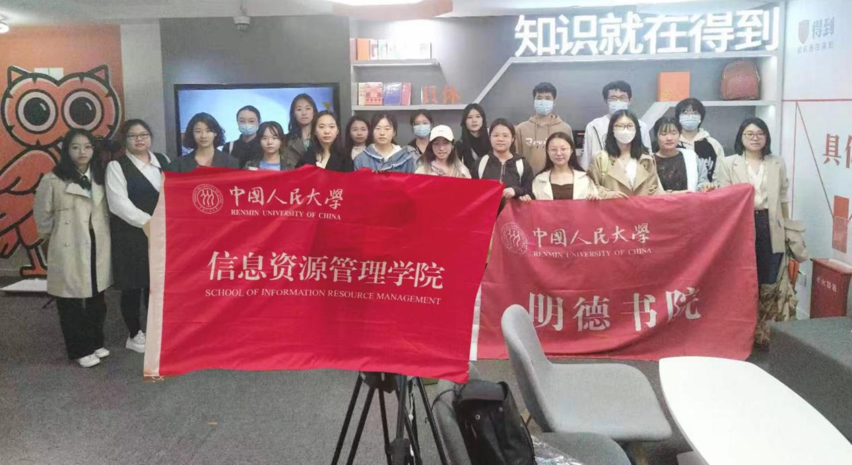 同学们首先来到得到三楼的营销部,猫头鹰主题LOGO可爱醒目、映入眼帘,同学们参观了得到的专业直播间,各类设施一应俱全,直播卖课和图书销售作为直播间的主营业务,信息时代气息铺面而来。同学们好奇地观看直播间的方舱形外观,纷纷表示:和人大的静音自习舱很像!看着十分亲切!这种独立式小型静音直播间无疑是新时代新型企业新需求的产物。此外,得到公司的会议室都是以名人的名字命名的,比如冯·诺依曼、贝聿铭、蔡元培等,他们的共性是对人类知识的进步做出了难以磨灭的贡献。这种独特的趣味和浪漫恰与一个知识共享和传播平台所具备的人文气息相契合,不少同学见之会心一笑。