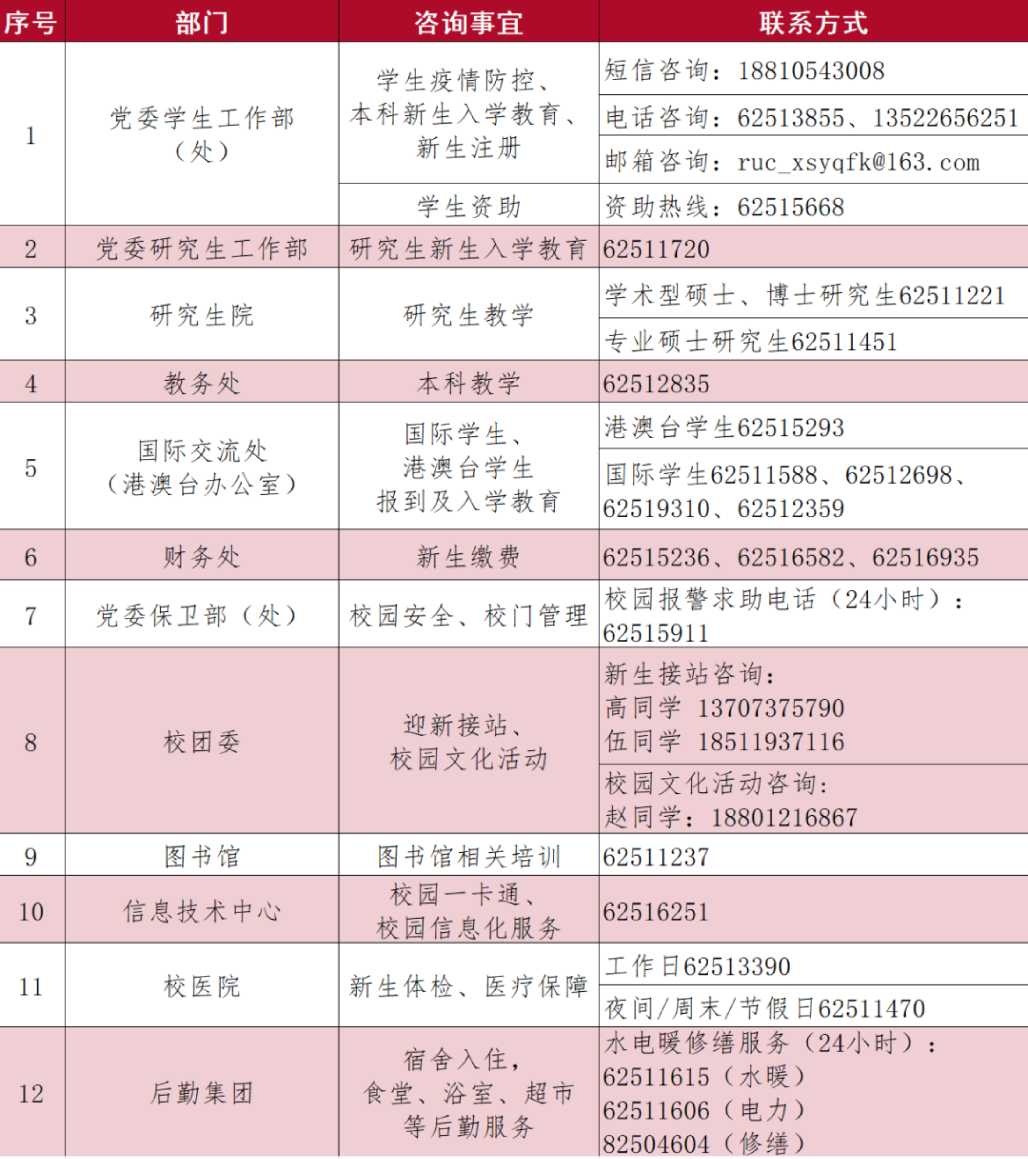 学校各部门、学院(书院)开通了迎新工作热线,开学报到、入校后遇到任何困难或问题,请随时与班主任、辅导员以及相关老师联系,我们一起想办法!