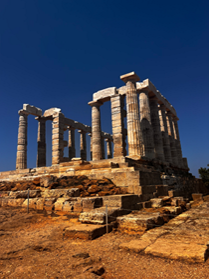 苏尼翁海岸线一望无尽,仿佛世界尽头,从沿途便可看到雪白的神庙石柱在烈日照耀下的光芒,也让海、天、神庙一起构成希腊国旗的蓝白双色。从波塞冬神庙,到德尔斐古迹,再到雅典公民大会遗址,拜访这些遗迹与废墟的过程仿佛一种仪式。