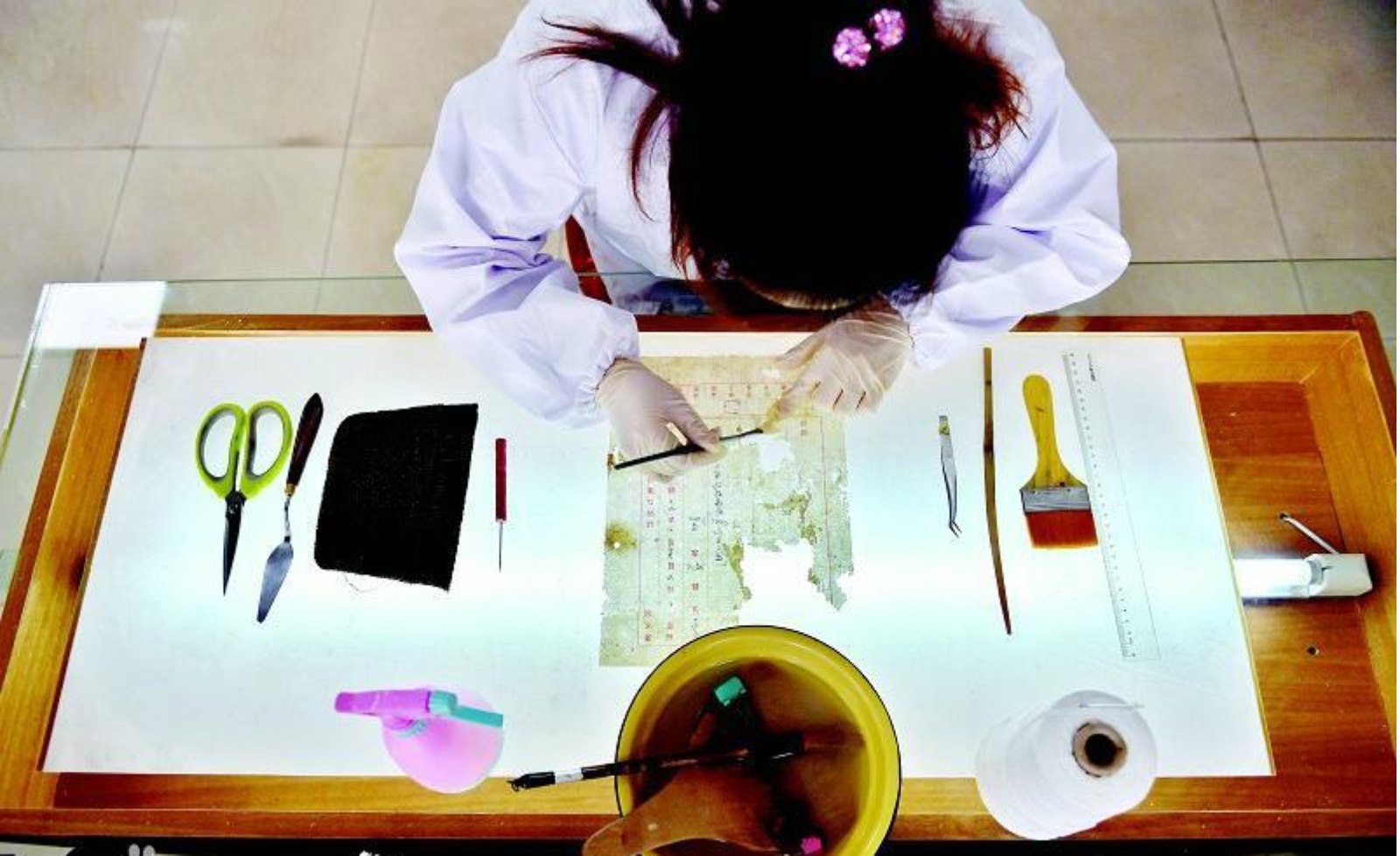 档案资料的修复和保护不仅是一项技术活,更是一项文化工程,其重大意义不言而喻。档案修裱人员修裱破损档案如同给病档案“治病”,通过补、托等技术手段,使“患病”档案恢复健康、延长寿命。