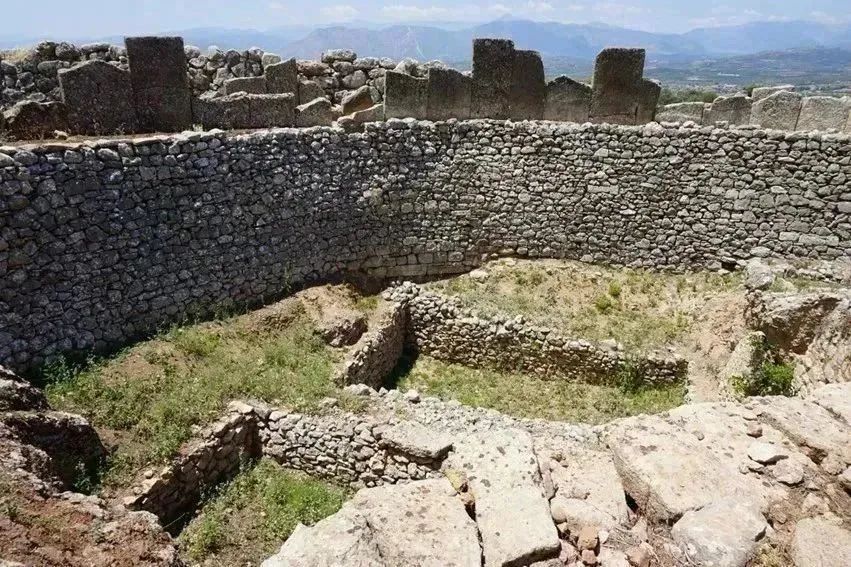 离开墓葬坑继续沿着上山小径上行,两旁都是巨石砌成的残墙,这里是原来工匠等有一技之长之人的居所和工坊。再向上,便是著名的迈锡尼王宫,王宫坐落在山顶的巨岩上,背对山崖。传说中克吕泰涅斯特拉便是在这里设计杀死了自己的丈夫阿伽门农。