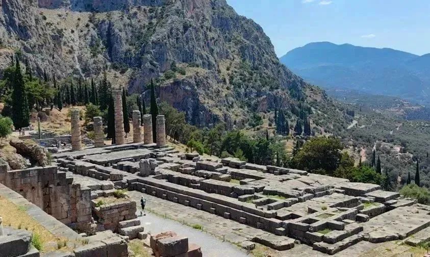7月10日,研学团离开帕特拉斯前往德尔菲参观。德尔菲曾是古代世界精神文明的中心,拥有希腊圣地中最重要的神殿之一阿波罗神庙,那是古希腊最知名的神谕所,其中希波战争前的神谕、苏格拉底是不是最智慧之人的神谕、要求俄瑞斯特斯杀死母亲为父报仇的神谕,都是同学们耳熟能详的故事。