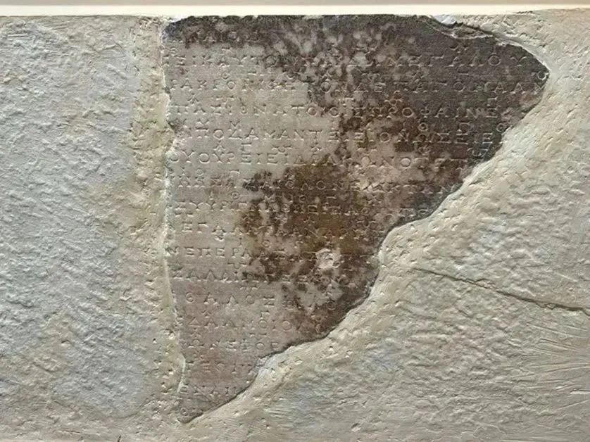 (铭刻阿波罗颂歌及乐谱的石碑和现代复原图)