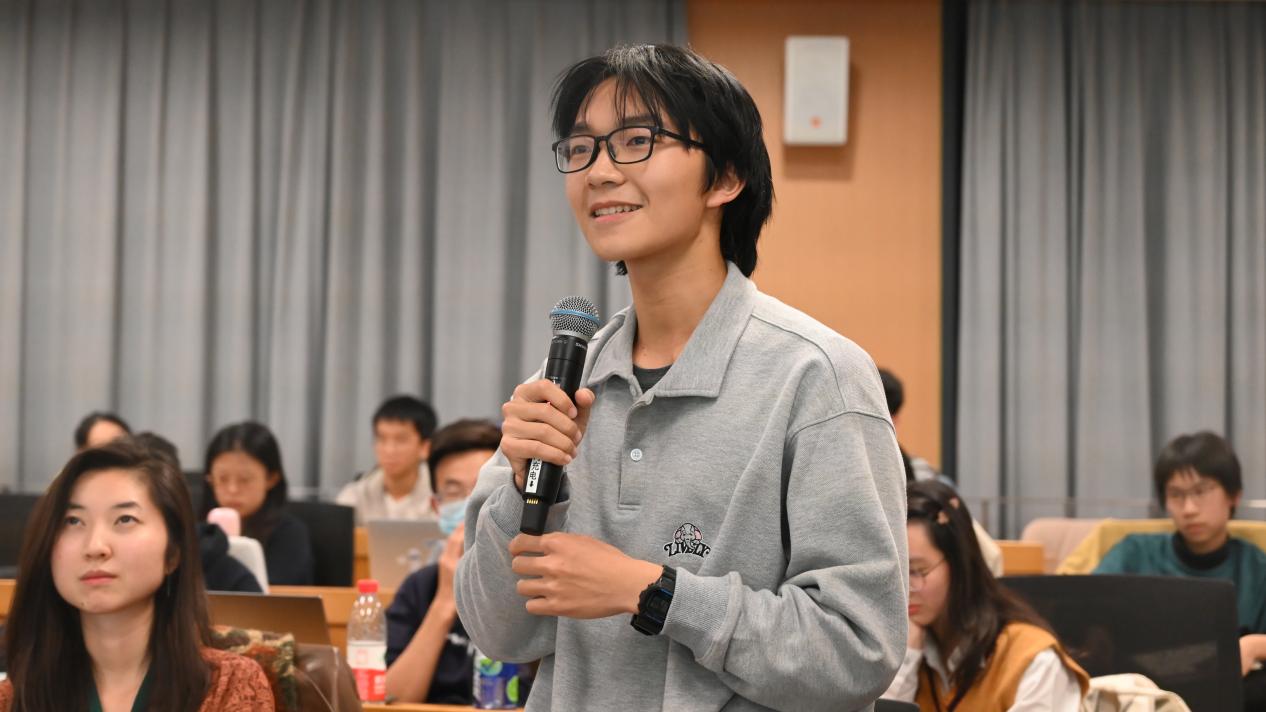 三位老师精彩的对谈结束后,同学们意犹未尽,也纷纷提出了自己的见解与困惑。同学们有的提出自己“生命的意义在于寻找生命的意义”的思考,表达对通专的辩证看法;有的就文学边界与核心,文史哲整合等问题提出疑问。三位老师都从各自专业角度回应了这些问题,。在此之中,三位老师也是金句频出。