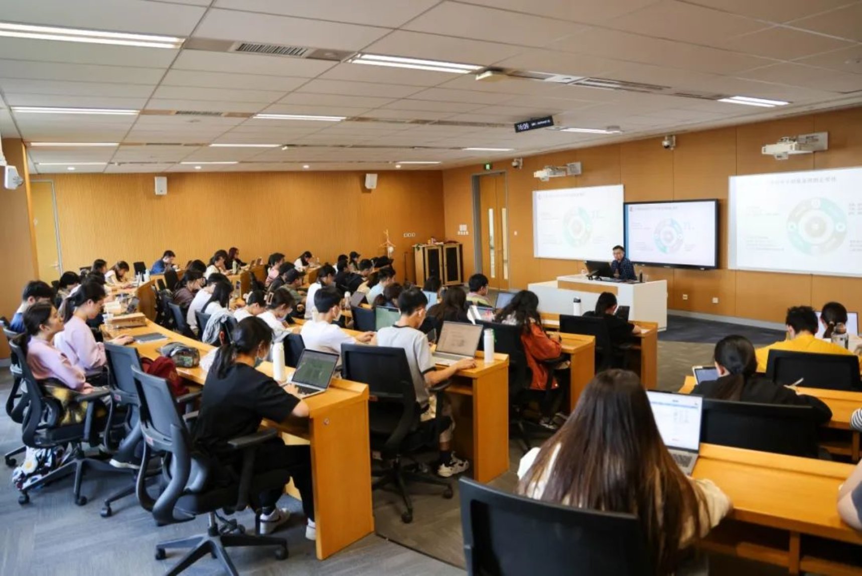 讲座后,同学们热情高涨,积极发言提问,洪涛一一耐心解答,主要阐释了古籍数据整理的来源与标准、人工智能对翻译工作的挑战等问题。最后,华建光为讲座作简单总结,他表示,未来知识生产的组织模式、评价机制可能会发生改变,亟待大家日后有所思考。