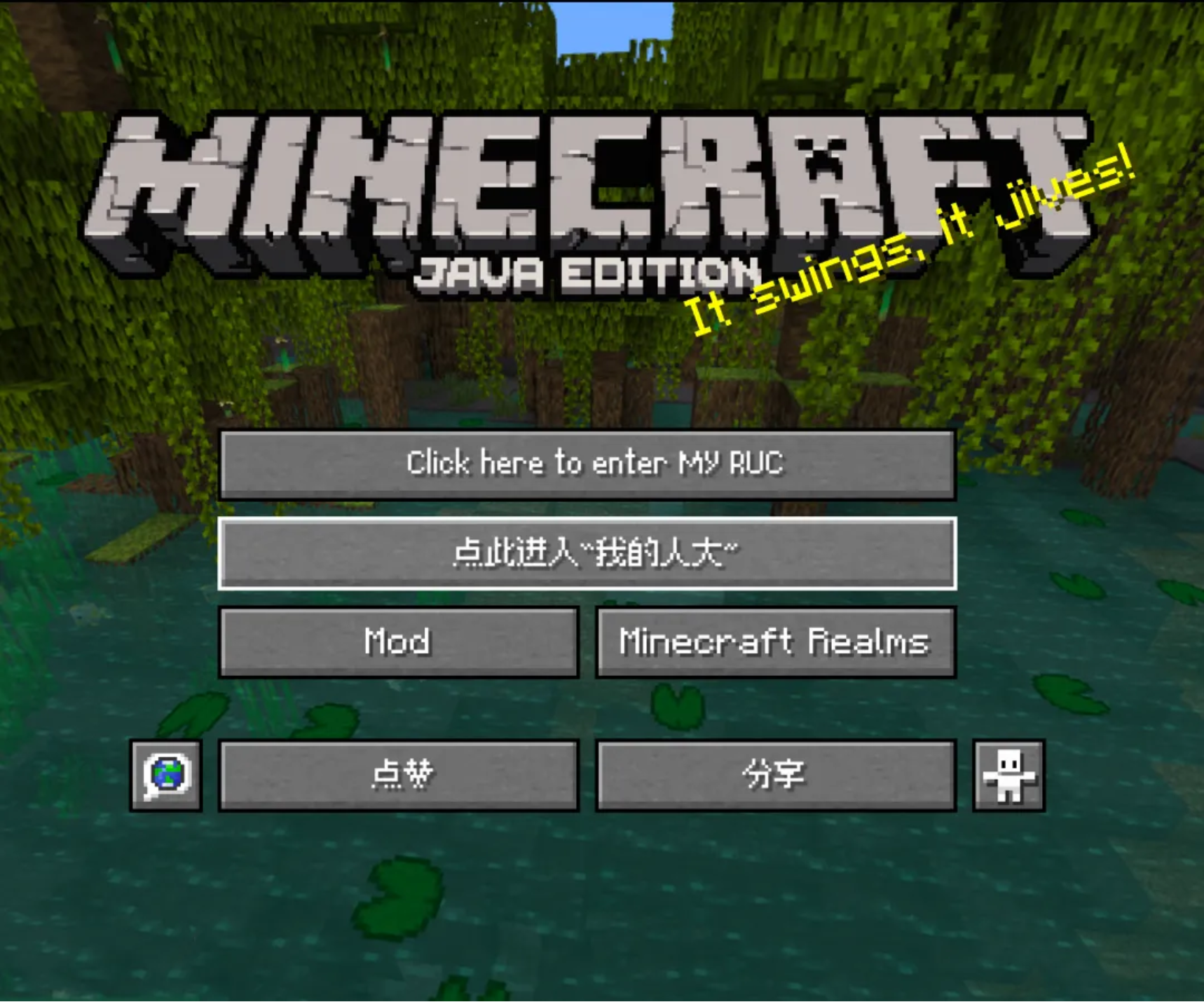 启动游戏,如果能够成功运行模组并进入游戏存档,那么恭喜你——成功进入了元宇宙里的人大!本存档的游玩逻辑完全与 Minecraft 相一致,如果有操作问题,请在网上查询,你会得到解答的!