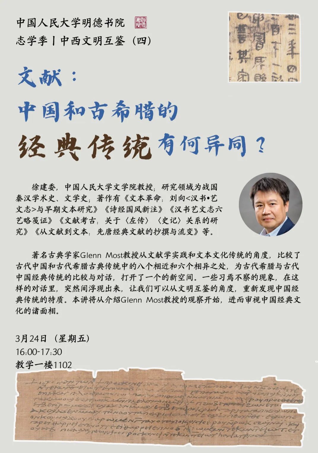 本周五,徐建委老师将带领我们以文献学为指南,穿越千年古今,在这场跨时空的对话中探索人类文化发展的多元性和复杂性。
