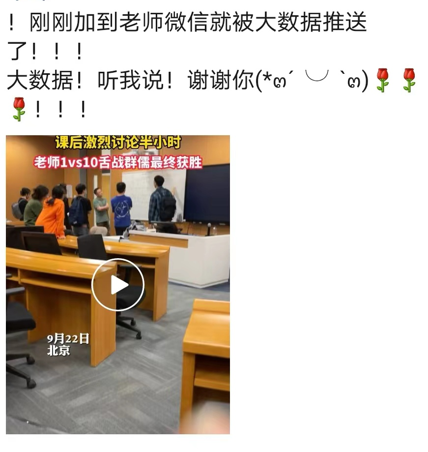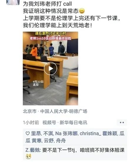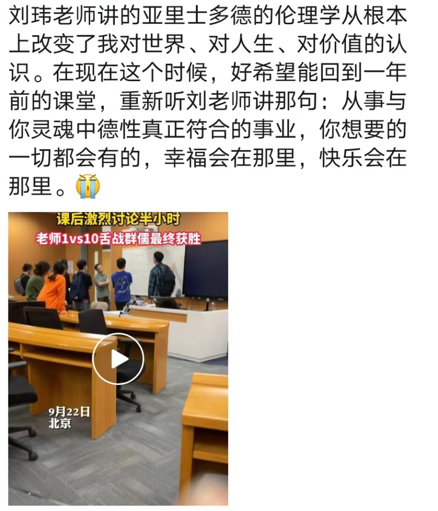 “严谨、深刻、激情”,“风趣、幽默、亲和,在刘玮老师身上形成了统一”,同学们的朋友圈中这样评价道。
