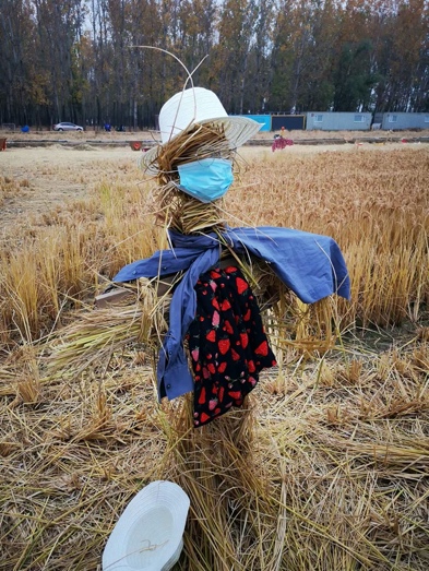 老师和同学们发挥想象、妙手生花,共同将脱粒后的秸秆制作成特色各异的稻草人,留下“在此一游”的印记。