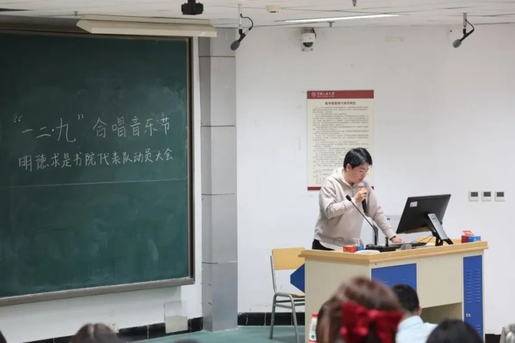 书院党委书记、书院建设与管理中心副主任蒙彬动员同学们积极参与合唱训练。