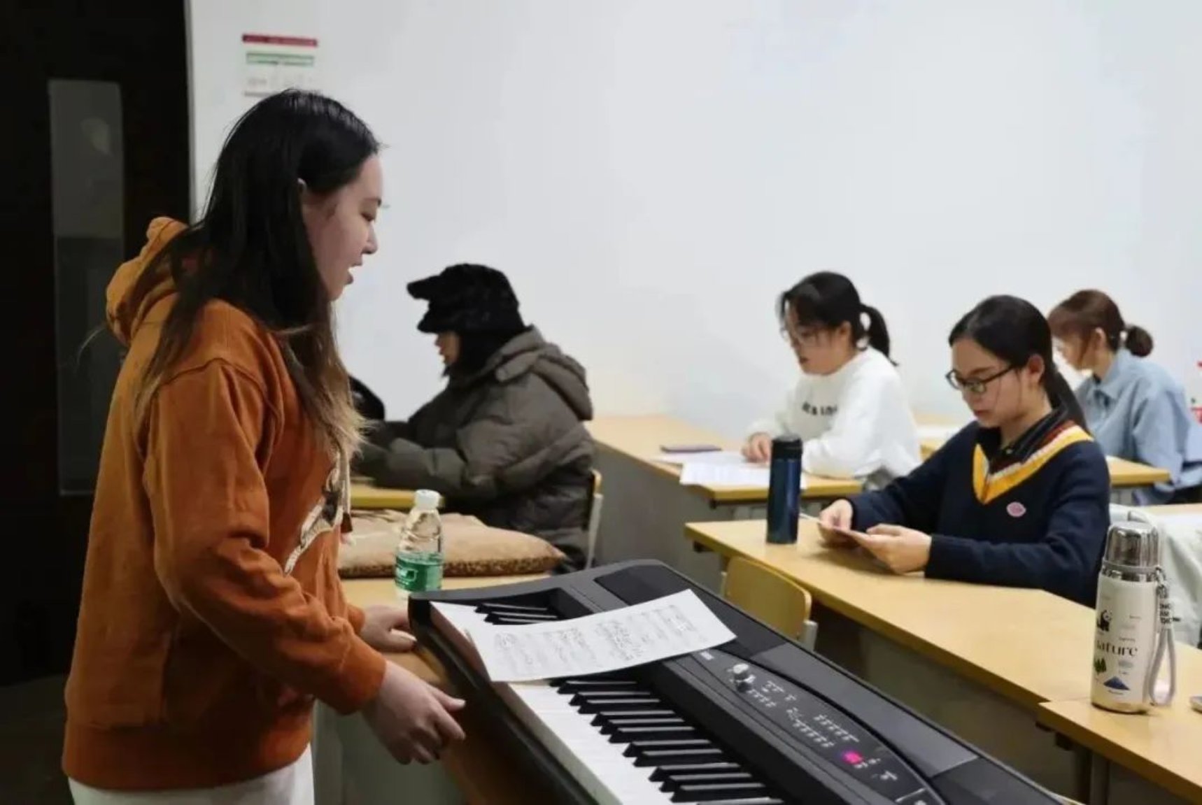 带训师姐黄昕弹奏钢琴帮助女低声部同学修正音准