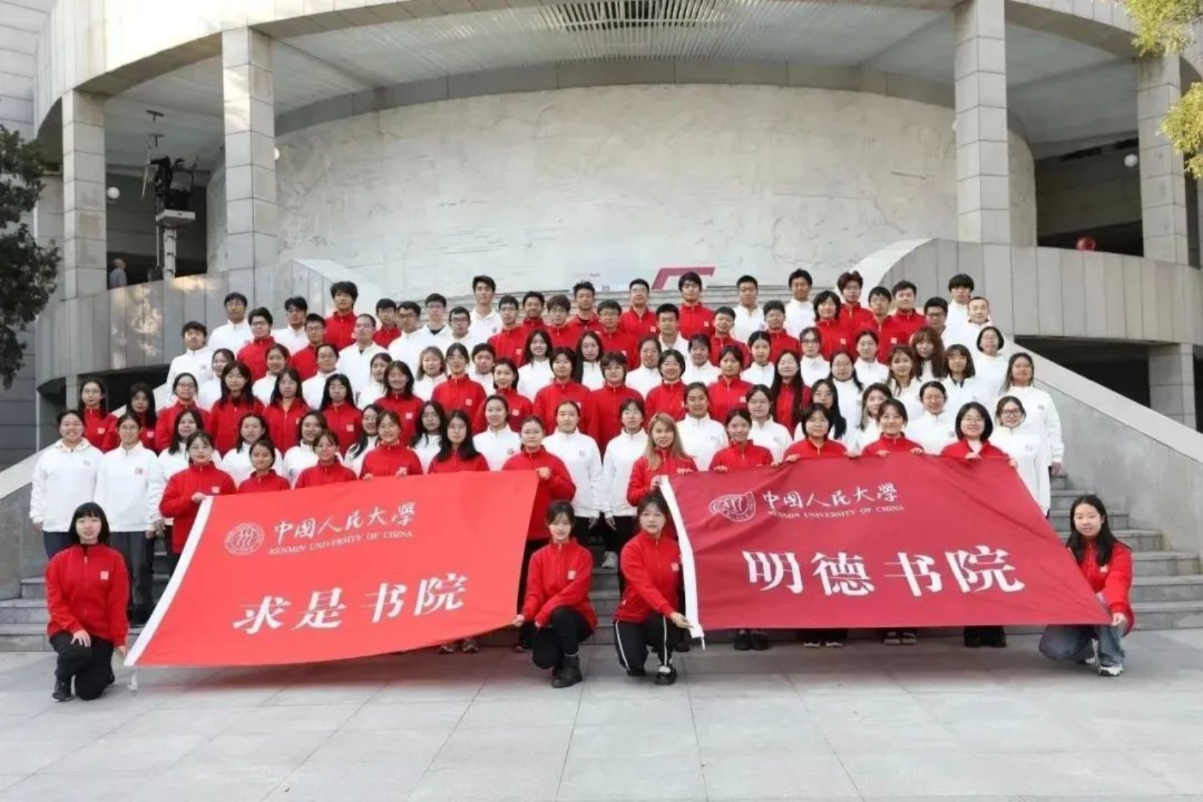 11月8日,书院代表队在中国人民大学校博物馆前拍摄初赛视频,演唱《陕北公学校歌》。