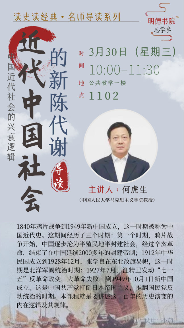 主讲人:何虎生,男,1962年11月,江苏省句容市人。1979年考入兰州大学历史系历史学专业学习,获历史学学士学位;1987年考入中国人民大学中共党史系中国革命史专业学习,获法学硕士学位;2000年在职考入中国人民大学中共党史系中共党史专业学习,获法学博士学位。主要学术背景为:历史学、政治学、中共党史学、宗教学、民族学等。